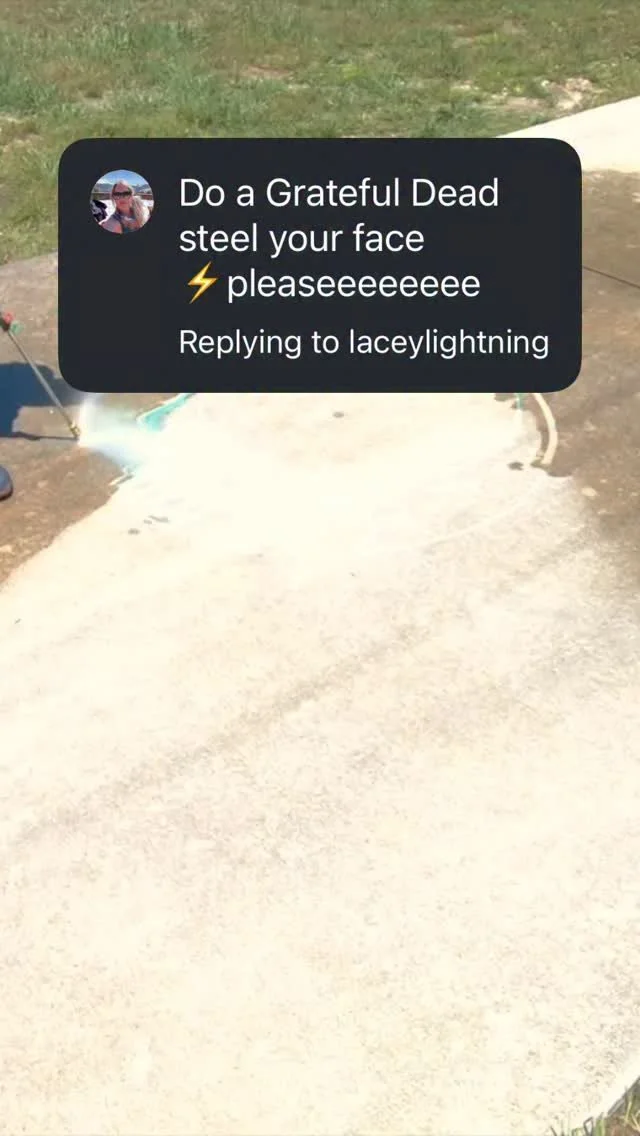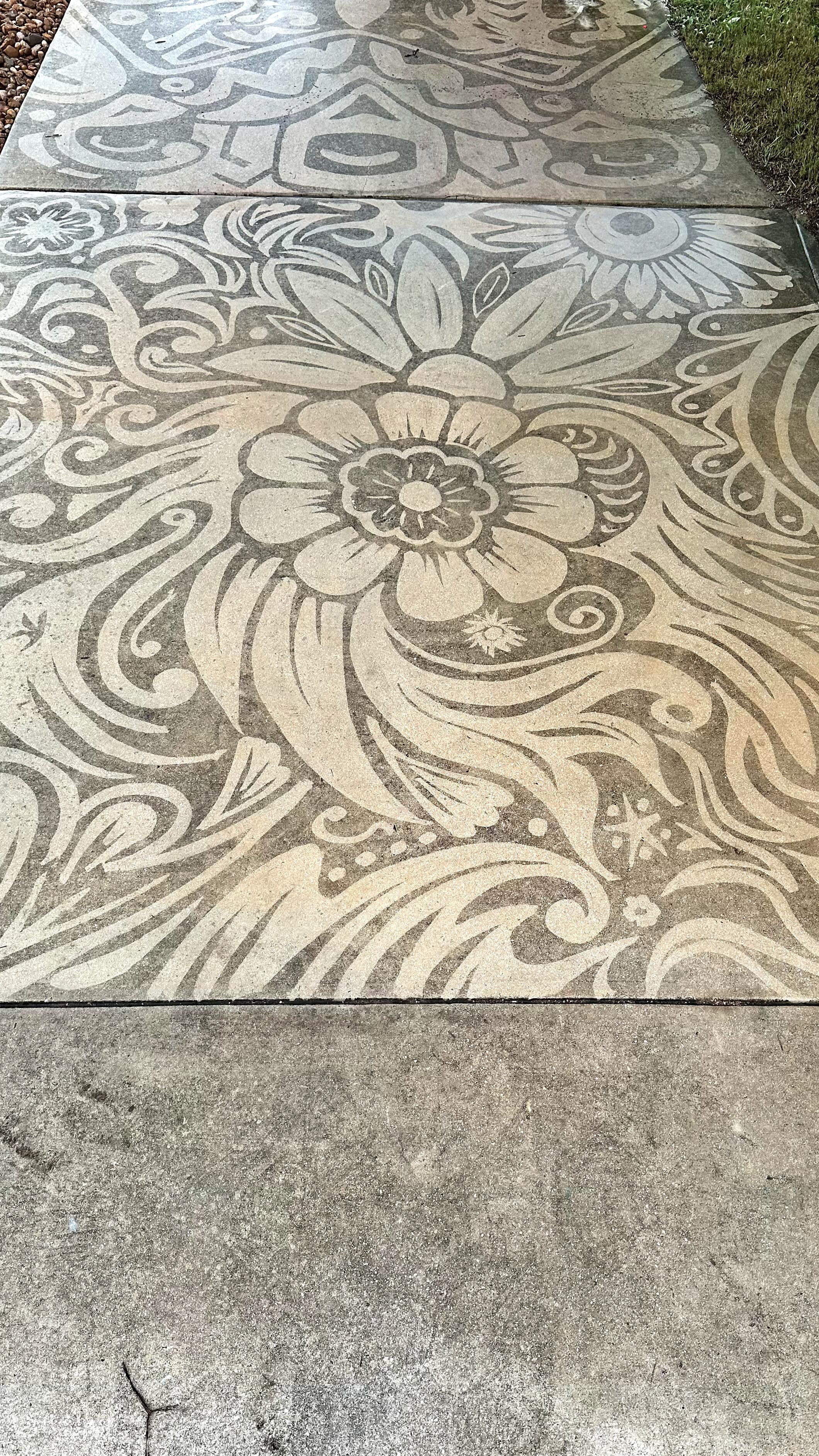 At the beginning of the COVD-19 pandemic, I bought a 180-pack of sidewalk chalk in the hope my family and I would color our entire driveway. Before we could do that, I needed to get out the pressure washer I had probably only ever used once in the 5 years I owned it to clean the concrete. I got bored with the monotony of cleaning and began making shapes that looked kind of like flames. It was at that point “Power Washing Art” was born, and I haven’t cleaned a whole surface since. It has been amazing how much people have enjoyed it and the art form has opened some amazing opportunities for me.